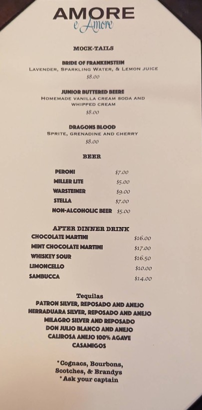 First time coming here it was my birthday last week and me and my best friends decided to check it out . The theme is Halloween right now and it was super cute. However, I personally did not enjoy my food it was not all that . The price we paid for our tab was $230 which was four pastas and four drinks that is all and on top we got the worst customer service we received from our waiter which is why I requested to have her changed to David who was super nice yet she still kept coming to our table . We were not greeted properly she had an attitude felt like she didn’t want to attend us. Overral my experience wasn’t all that great but the drinks on the menu was good David made it enjoyable for the rest of the night only fun thing there is the lady that comes in to paint you .